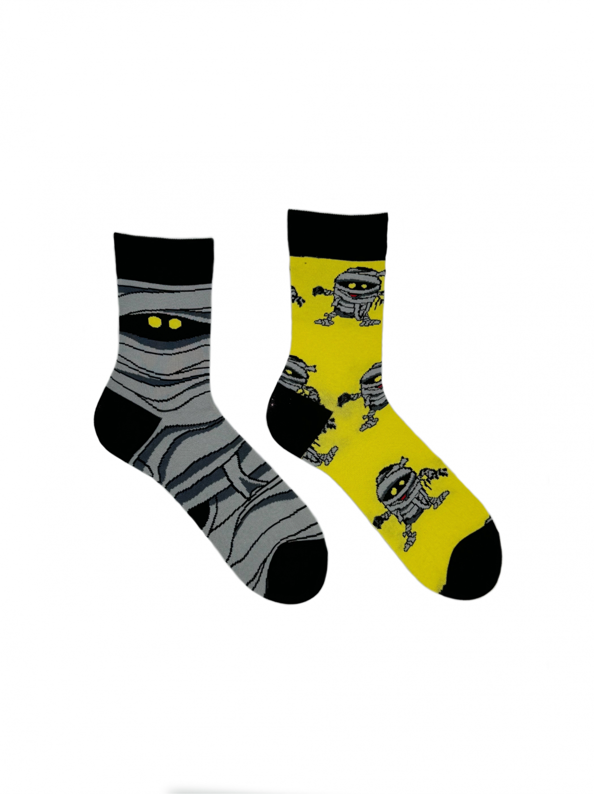 Șosetele noastre desperecheate cu mumii jucăușe aduc un amestec perfect de mister și veselie. Cu un design inedit și plin de viață, aceste șosete sunt alegerea perfectă pentru a-ți exprima personalitatea jucăușă și pentru a adăuga un strop de magie fiecărei zile.